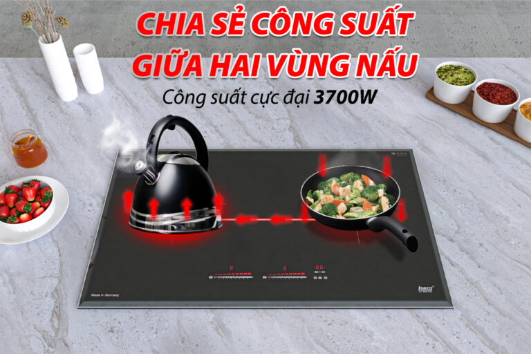 Chức năng chia sẻ công suất giữa hai vùng nấu, giúp đẩy công suất của một vùng nấu lên mức cực đại 3700W , và giảm mức công suất của vùng nấu còn lại, giúp cho việc đun nấu nhanh chóng hơn, đồng thời tăng tuổi thọ cho bếp.