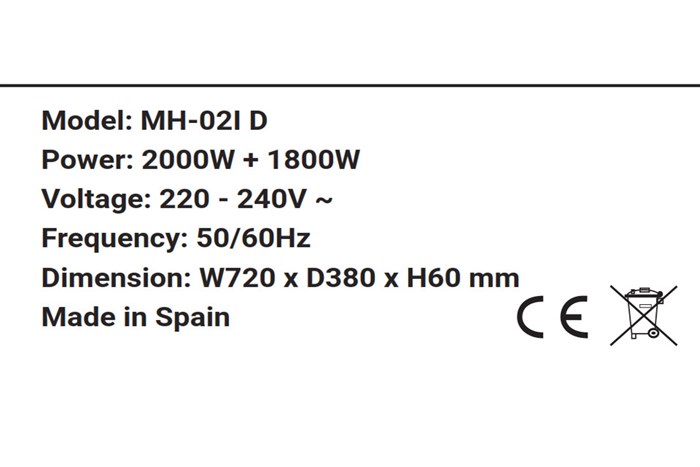 Với công suất 2 kW + 1.8 kW (Ø 215) + (Ø 185) và điện áp 220VAC/50hz, bếp âm từ đáp ứng nhu cầu nấu nướng hàng ngày một cách dễ dàng và hiệu quả, giúp bạn tiết kiệm thời gian và năng lượng.