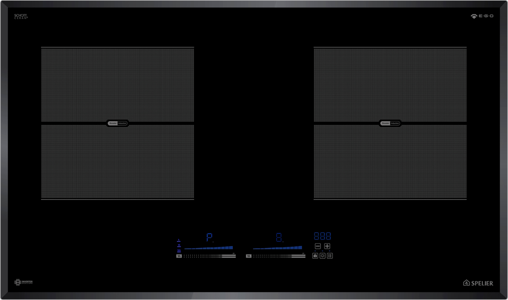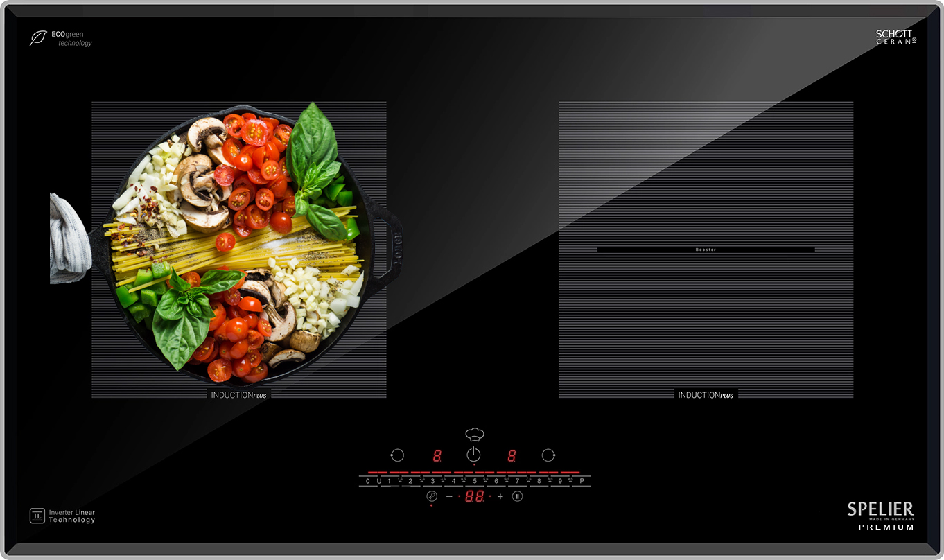 Bếp từ Spelier SPE IC 1189 gồm 2 vùng nấu có tổng công suất 4000W. Vùng nấu từ trái có công suất 2300W với khả năng đun nấu siêu nhanh và tiết kiệm điện năng có thể đạt mức công suất tối đa Booster 3700W. Vùng nấu từ phải có công suất 2300W với khả năng đun nấu siêu nhanh và tiết kiệm điện năng có thể đạt mức công suất tối đa Booster 3700W. Chỉ trong chốc lát sau khi kích hoạt tính năng này, nhiệt lượng trên vùng nấu từ tăng lên công suất tương đương với mức nhiệt lượng lớn nhất. Do đó, các món ăn được nấu chín nhanh hơn, tiết kiệm thời gian vào bếp cho chị em nội trợ. Chức năng Booster nấu siêu nhanh, tuy nhiên thời gian tối đa mặc định dùng chức năng này là 10 phút / lần tránh quá tải.