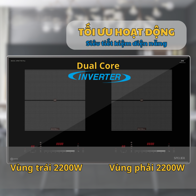 Spelier SPM T75K PLUS được trang bị công nghệ “Dual Core Inverter” và “ECO Green Technology”, giúp tối ưu hóa việc tiêu thụ điện năng. Nhờ đó, bếp không chỉ tiết kiệm điện mà còn giảm thiểu nhiệt tỏa ra, đảm bảo an toàn cho người dùng và bảo vệ các thiết bị điện xung quanh nhờ công nghệ khử nhiễu từ.