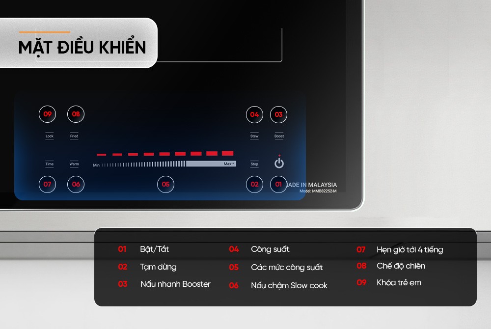 - Cảnh Báo Chống Trào: Bếp sẽ tự động ngắt khi phát hiện nước trào lên mặt kính, đặc biệt tại khu vực bảng điều khiển, bảo vệ thiết bị và tăng cường độ an toàn.