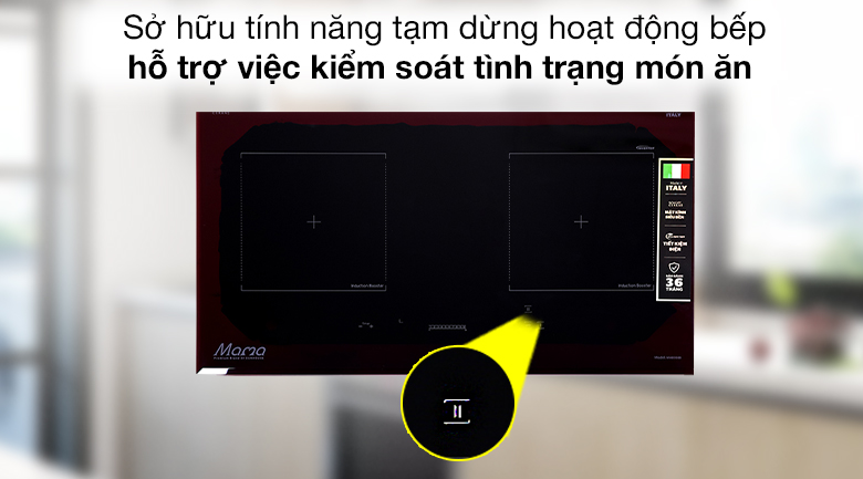 Bếp sở hữu tính năng tạm dừng hoạt động trong thời gian ngắn, khi kích hoạt lại bếp sẽ vận hành theo chế độ đã cài đặt trước
