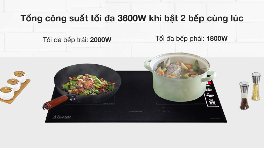 Công suất vùng bên trái 2000W và bếp phải 1800W.