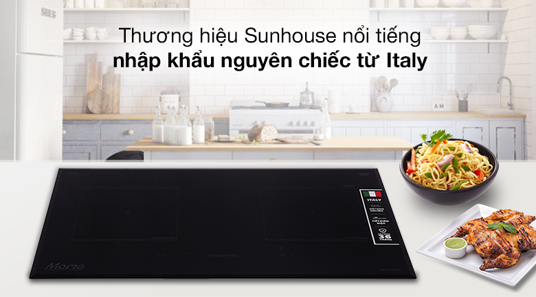 Bếp từ đôi Sunhouse thương hiệu Việt Nam được nhập khẩu nguyên chiếc từ Italy, đảm bảo kiểm tra chất lượng nghiêm ngặt, bền tốt khi sử dụng