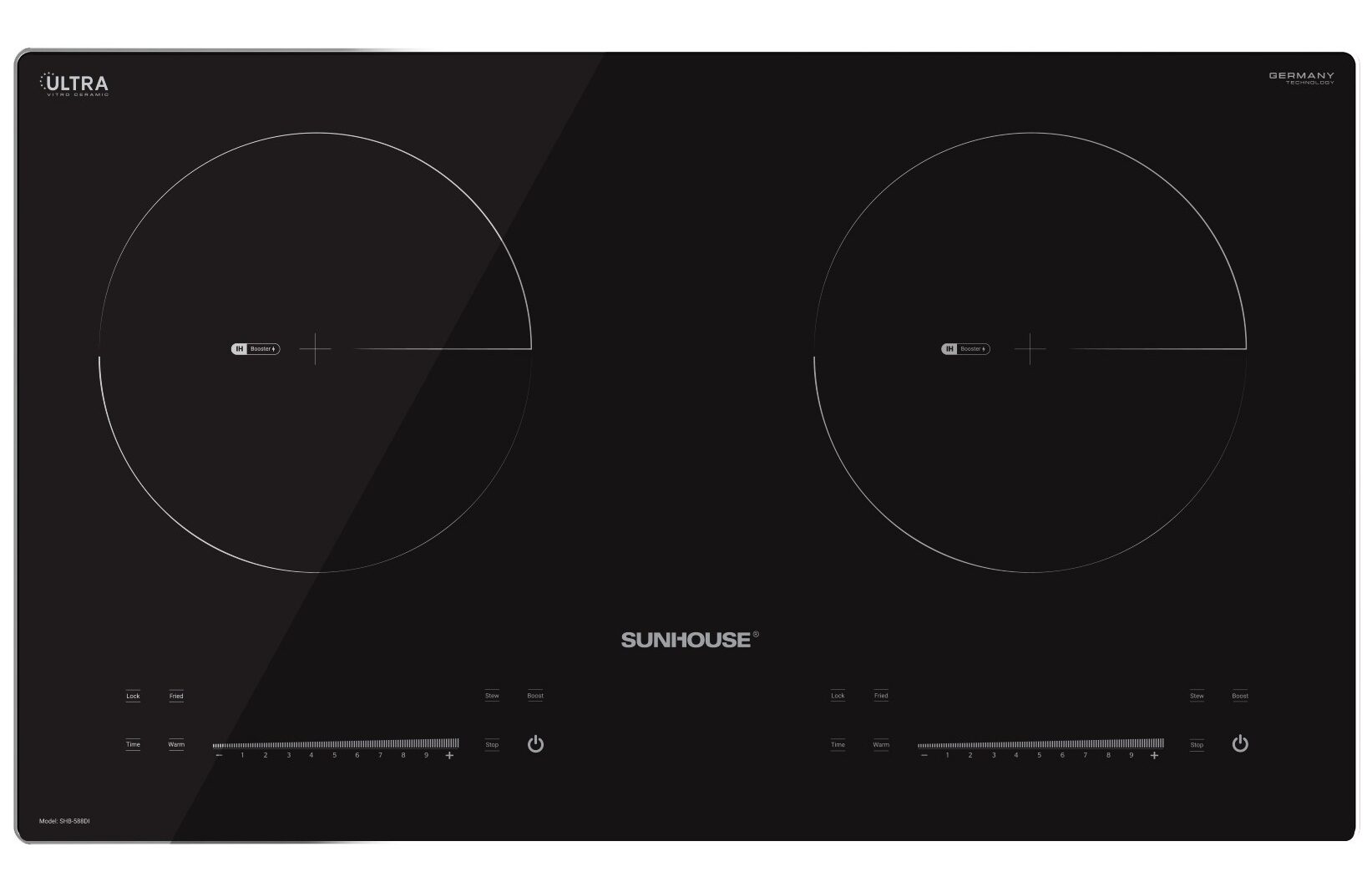 - Cảnh báo quá nhiệt/nồi cạn: Bếp từ Sunhouse được thiết kế cảm biến nhiệt độ dưới mỗi vùng nấu, khi có hiện tượng quá nhiệt (nồi đun bị cạn, cháy…) bếp sẽ chủ động ngắt công suất để đảm bảo an toàn cho thiết bị cũng như đảm bảo không sự cố đáng tiếc xảy ra.
