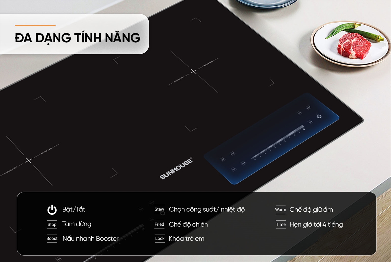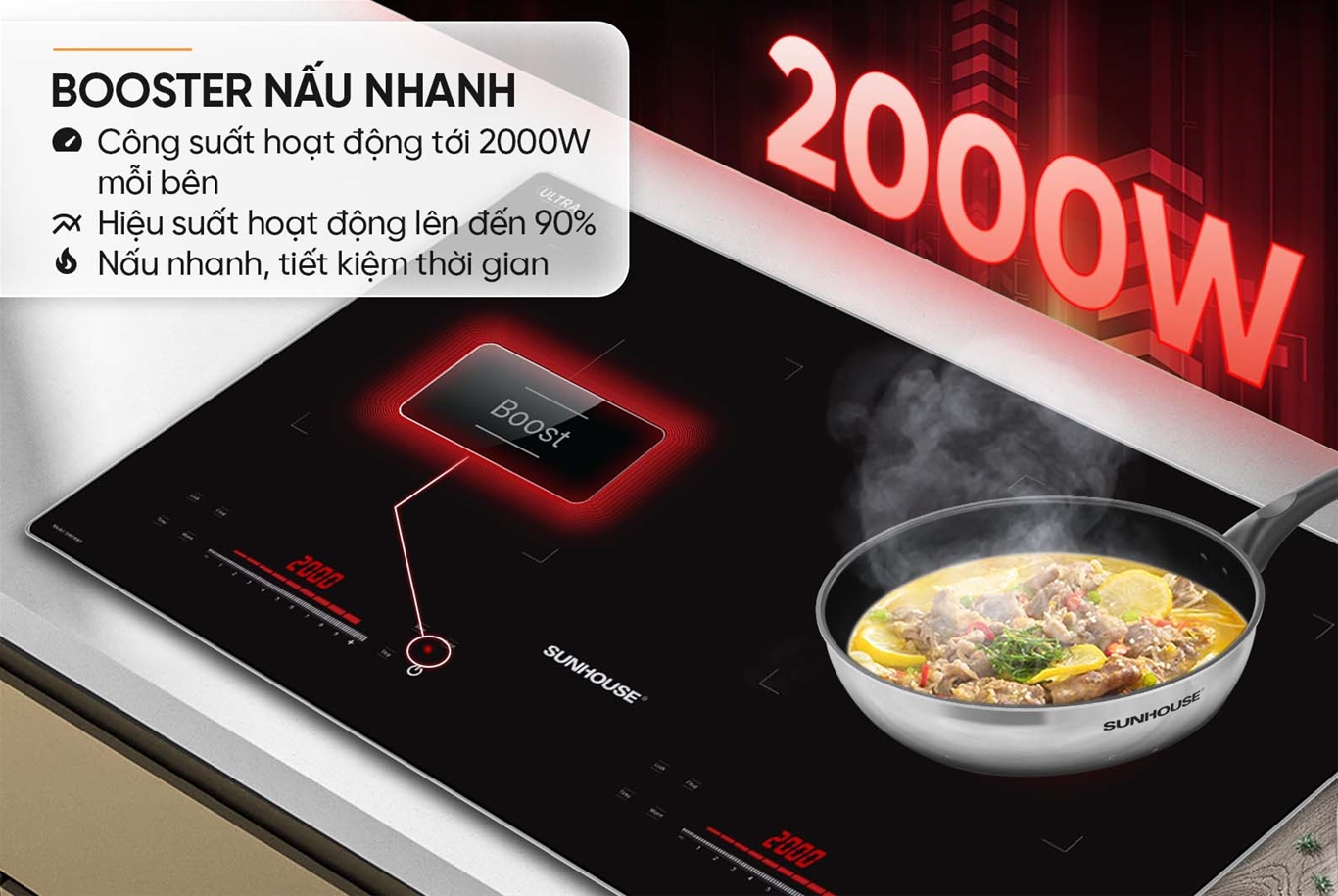 Chức năng nấu nhanh – BOOSTER giúp bếp đẩy lên mức công suất cực đại nhanh nhất, giúp gia nhiệt nhanh chóng và cho hiệu suất hoạt động lên đến 90% so với các bếp từ thông thường. Chức năng Booster cho phép tăng công suất lên mức cao nhất trong thời gian ngắn, giúp nhiệt độ tăng nhanh chóng và nấu nướng được thực hiện một cách hiệu quả. Điều này giúp tiết kiệm thời gian và làm việc nhanh hơn trong bếp.
