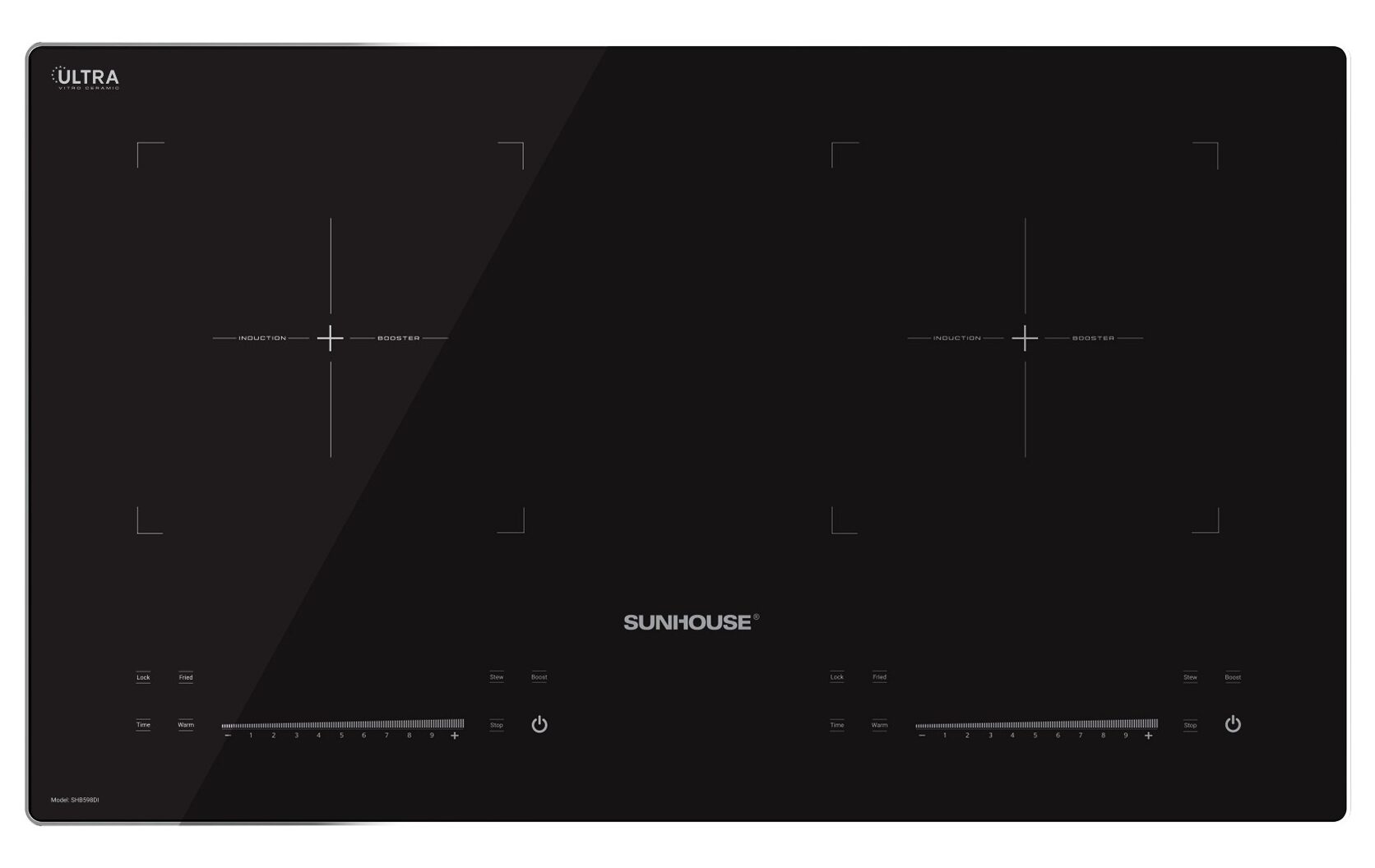 - Cảnh báo quá nhiệt/nồi cạn: Bếp từ Sunhouse được thiết kế cảm biến nhiệt độ dưới mỗi vùng nấu, khi có hiện tượng quá nhiệt (nồi đun bị cạn, cháy…) bếp sẽ chủ động ngắt công suất để đảm bảo an toàn cho thiết bị cũng như đảm bảo không sự cố đáng tiếc xảy ra.