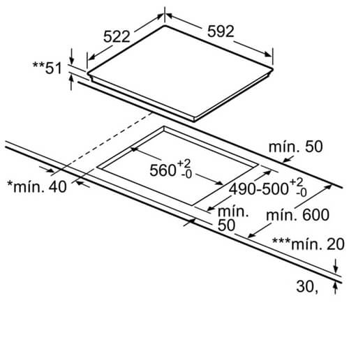 - Vùng nấu sau bên phải: 1 x Ø 145 mm, 1.4 KW (có thể tăng đến 2.2 KW)