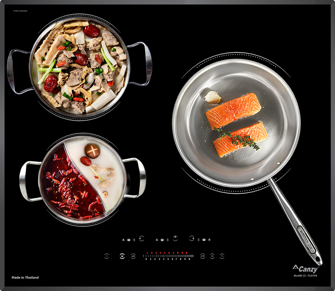Tự động phát hiện vùng nấu và vùng nấu chỉ nóng lên khi có nồi: Các sản phẩm bếp từ của Canzy bao gồm CZ-TL67HA sẽ chỉ khởi động công suất khi nồi được đặt lên vùng nấu, trường hợp chưa đặt nồi khi đã khởi động, bếp sẽ không đóng công suất và cảnh báo mã lỗi không có nồi hoặc nồi không phù hợp.