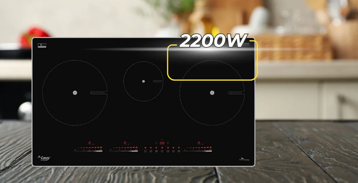 Đây một trong số không nhiều bếp từ có thể đạt Booster lên đến 2200W. Với thiết kế của bếp từ CZ-856HN cả 3 vùng nấu có khả năng kích công suất Booster cực đại lần lượt là 2200W | 1600W | 2200W giúp công việc đun nấu trở nên nhanh chóng và tiết kiệm thời gian khi cần thiết.