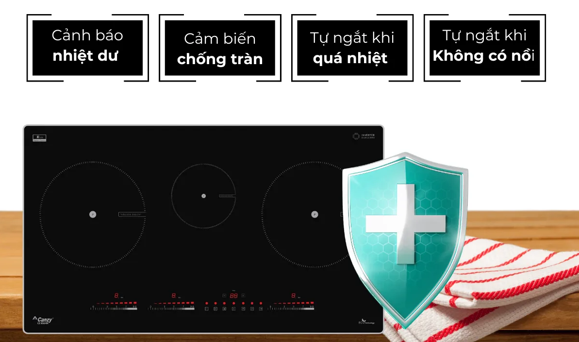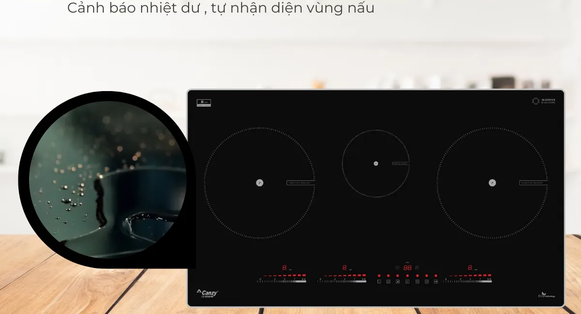 Bảo vệ quá nhiệt (cảm biến nhiệt độ tích hợp trong từng vùng nấu)