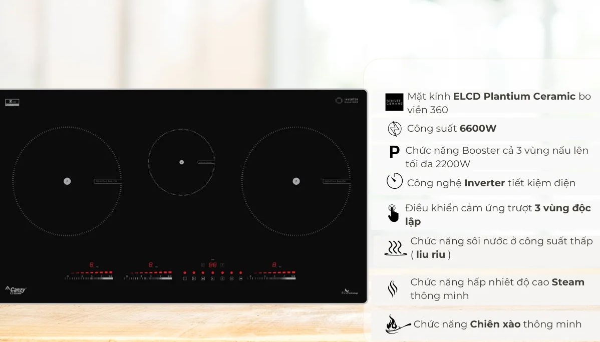 Bếp từ Canzy CZ-856HN thiết kế sang trọng và tinh tế với các tính năng nổi trội, hứa hẹn sẽ là một người bạn đồng hành tin cậy cho các bữa ăn gia đình.
