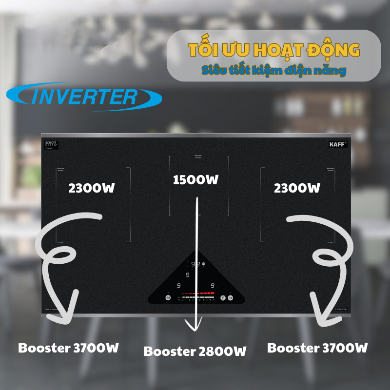 Bếp từ Kaff KF-IC5801II Plus được trang bị nhiều công nghệ hiện đại để mang đến hiệu năng vượt trội và tiết kiệm điện năng. Công nghệ biến tần INVERTER giúp tiết kiệm 40% điện năng so với các loại bếp thông thường. Công nghệ Half- Bridge gia nhiệt liên tục giúp bếp hoạt động ổn định và hiệu quả. Chức năng tự động chia sẻ công suất (Power management) cho các vùng nấu khác nhau giúp tối ưu hóa việc sử dụng điện.