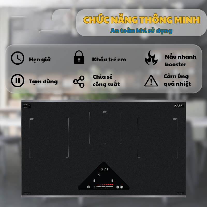 Bếp từ Kaff KF-IC5801II Plus được tích hợp nhiều tính năng an toàn và tiện lợi như: