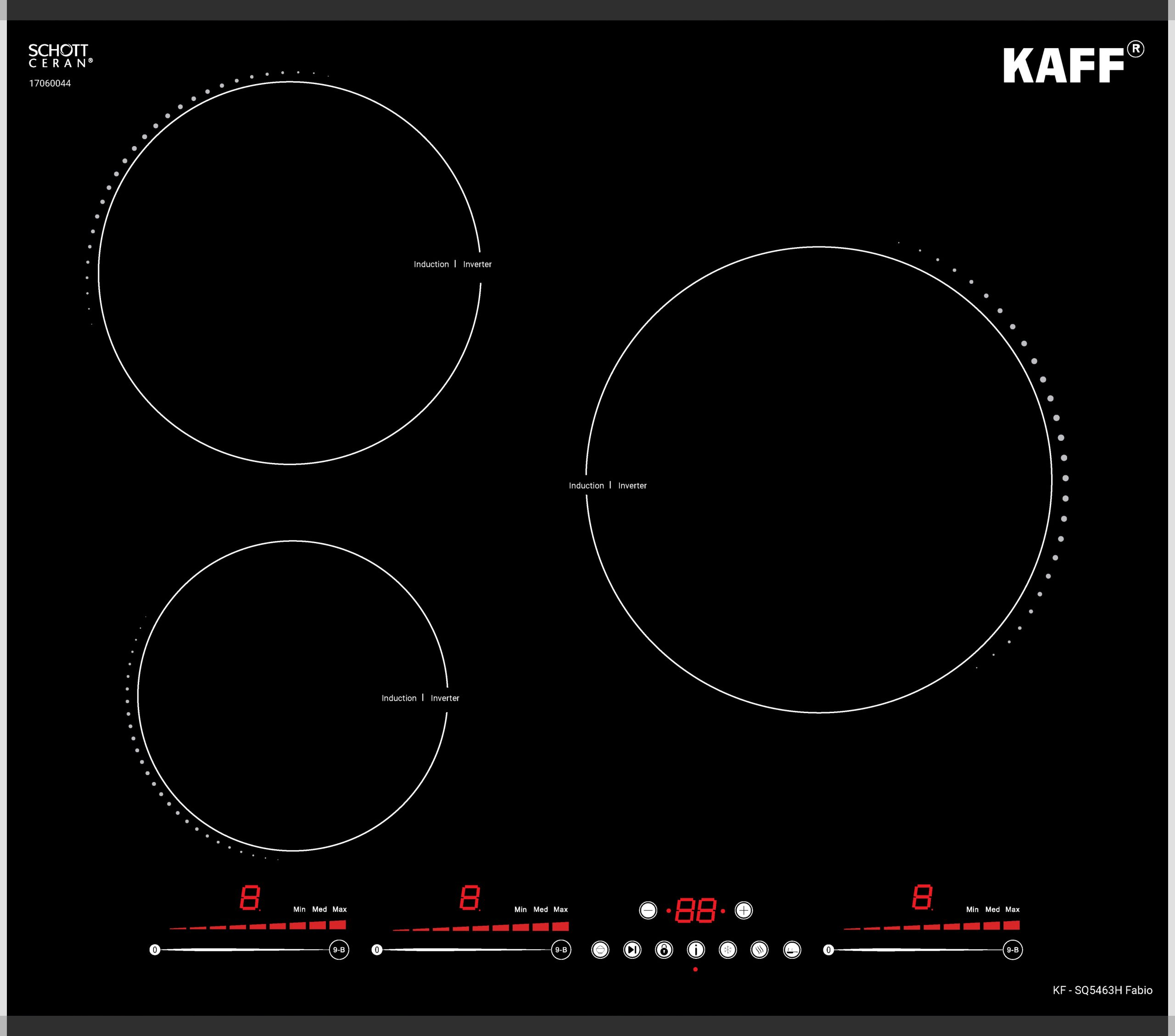Bếp từ Kaff KF-SQ5463H Fabio thiết kế bảng điều khiển dạng trượt Slider Control độc lập cho từng vùng nấu cùng các tiện ích được cài đặt sẵn. Siêu nhạy, dễ dàng sử dụng và phù hợp với nhiều lứa tuổi.