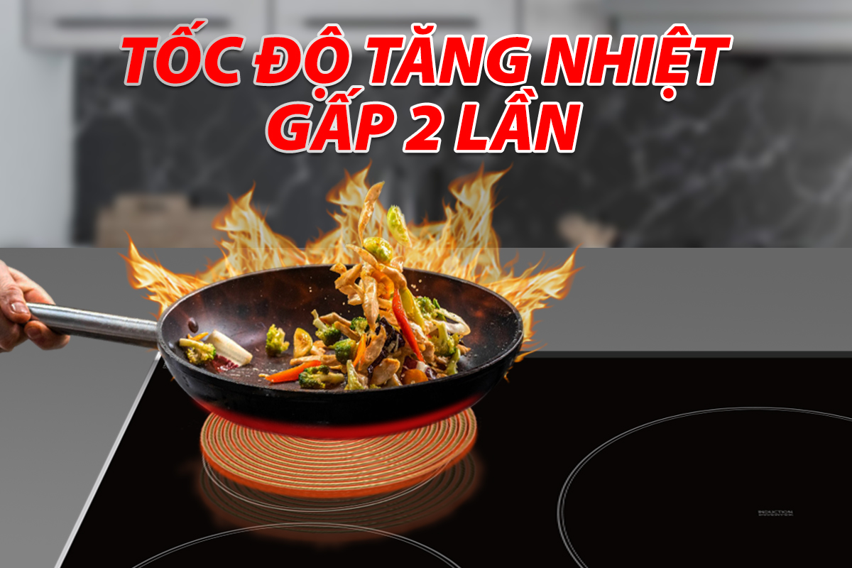 Với thiết kế mạch công suất lõi kép của bếp từ Lorca, bếp có khả năng đạt được mức công suất yêu cầu rất nhanh, kết quả test thử tại phòng thí nghiệm kỹ thuật của Lorca cho thấy, bếp Lorca có tốc độ tăng nhiệt cao gấp 2 lần so với bếp truyền thống.
