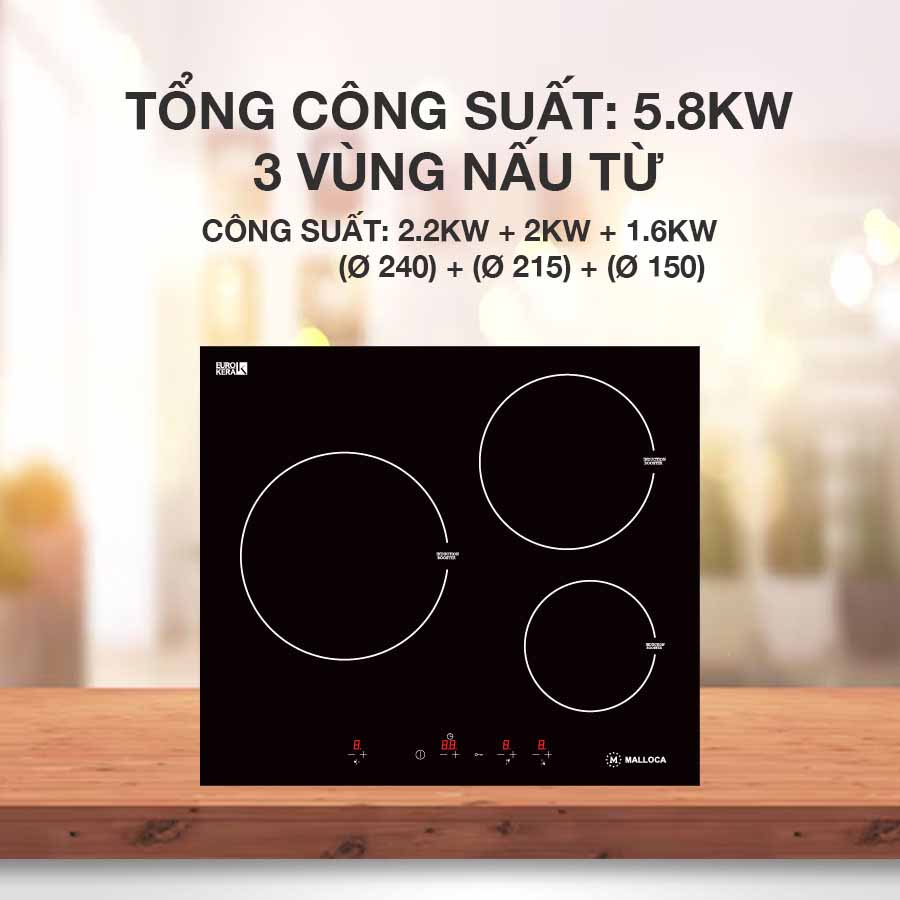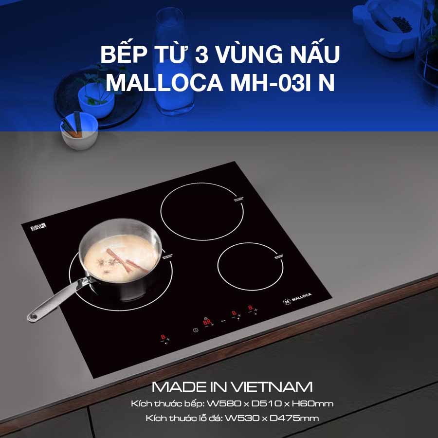 Bếp từ 3 vùng nấu Malloca MH – 03I N giúp quá trình nấu ăn thêm dễ dàng
