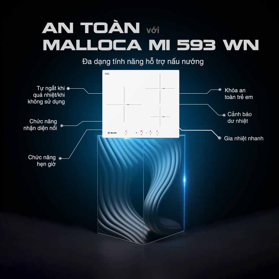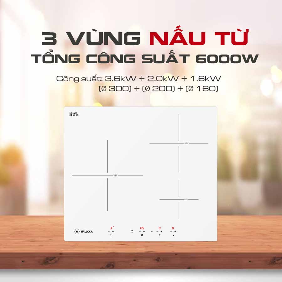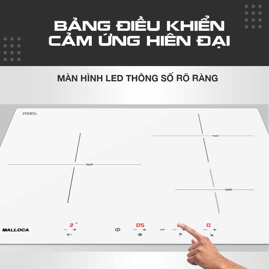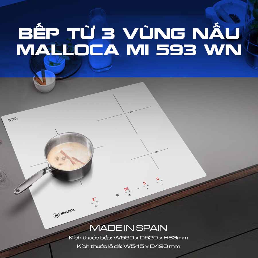 Bếp từ 3 vùng nấu Malloca MI 593 WN – Điểm nhấn cho căn bếp hiện đại