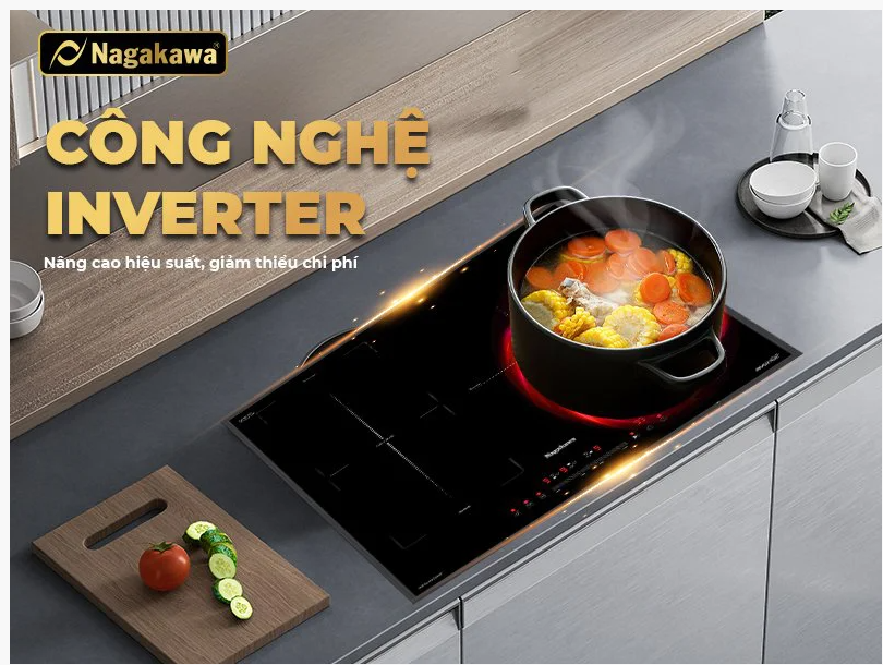 Bếp điện từ thông minh Nagakawa NK3C05MSF sử dụng công nghệ biến tần Inverter kiểm soát công suất của thiết bị, nhằm tránh hao phí năng lượng trong quá trình sử dụng. Nguyên tắc cơ bản của công nghệ Inverter là dựa trên kiểm soát từng tần số dao động (Hz) của các bảng mạch bên trong bếp, giúp đảm bảo độ ổn định của bếp, tiết kiệm tối đa năng lượng và gia tăng tính năng thông minh cho bếp.