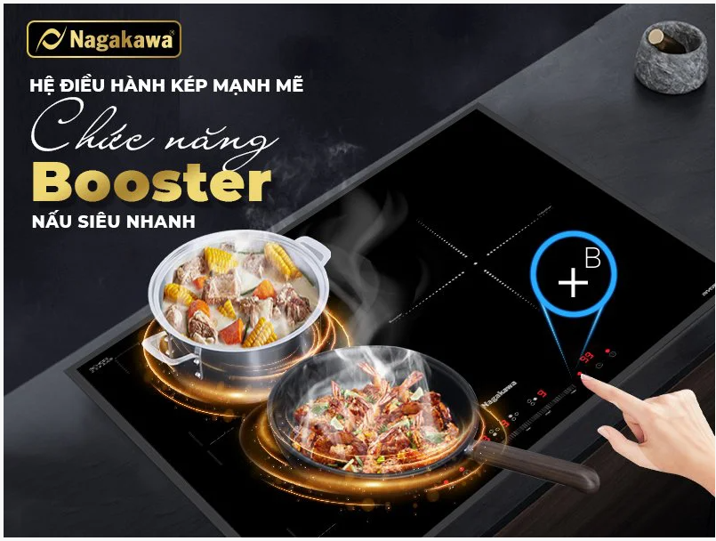 Bếp điện từ thông minh Nagakawa NK3C05MSF với chức năng Booster giúp bạn lựa chọn mức công suất cao nhất khi muốn nấu các món đặc trưng cần gia nhiệt nhanh, giúp lưu giữ đúng hương vị món ăn mong muốn.