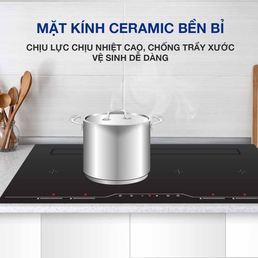 Bếp từ kết hợp máy hút mùi Malloca HIH-904 SLIM Là dòng sản phẩm của Tây Ban Nha được nhập khẩu trực tiếp với thiết kế tiện dụng khi có sự kết hợp giữa bếp từ và máy hút khói, hỗ trợ tối đa cho người nội trợ trong việc nấu nướng nhanh hơn. Mặt kính Cearamic – màu đen sang trọng, bền bỉ, chống trầy xướt, chịu được nhiệt độ cao và chịu lực tốt. Kết hợp cùng với bảng điều khiển cảm ứng trượt slide thích hợp với những gia đình hiện đại ngày nay.