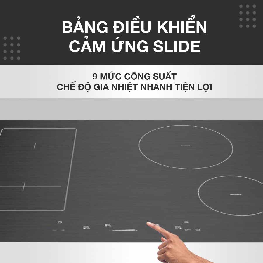 - Vùng từ 4: Tương tự 3 vùng trên, vùng 4 này cũng có thiết lập 9 mức công suất, tối đa là 1600W. Vùng nấu phù hợp với các loại nồi, chảo có kích thước nhỏ, vừa phải.Vệ sinh dễ dàng: Chiếc bếp này sẽ biến việc vệ sinh bếp trở lên dễ dàng hơn bao giờ hết. Bề mặt trơn nhẵn, các loại cặn bẩn hay thức ăn rơi vãi không bao giờ bị cháy hay dính bết. Bạn có thể dễ dàng lau sạch chúng dễ dàng với 1 chiếc khăn ẩm.