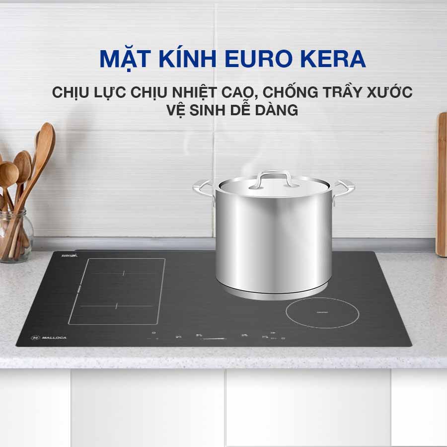 Là sản phẩm bếp thương hiệu Malloca nổi tiếng đến từ Tây Ban Nha. Sản phẩm được trang bị mặt kính dạng xước Metalic hiện đại, chất liệu được gia công bởi EuroKera có khả năng chịu lực, chịu nhiệt cực tốt.