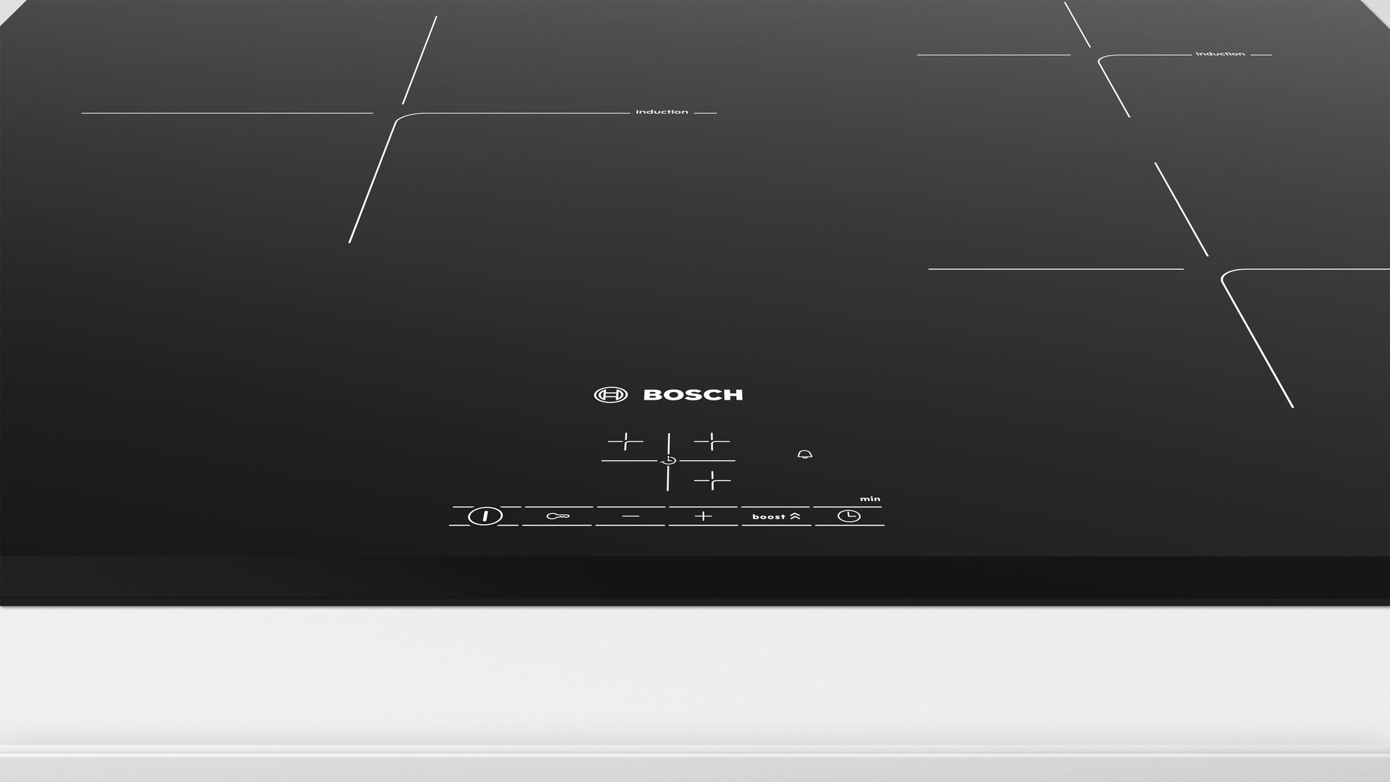 Bếp từ Bosch PUC631BB1E có thể tự nhận diện kích thước của xoong, nồi, chảo. Nếu không có dụng cụ nấu, bếp sẽ tự động tắt.