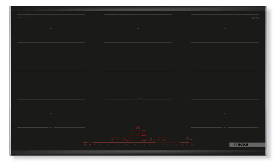 Với FlexInduction, bạn có thể kết hợp hai vùng nấu thành một bề mặt nóng đều. Bếp từ Bosch sẽ tự động nhận diện kích cỡ và vị trí của nồi chảo nằm trong vùng nấu. Dù là bình đun pha cà phê nhỏ hay khay nướng ngoại cỡ, bếp từ Bosch đều có thể đun mọi loại xoong, nồi, chảo thật chính xác và hiệu quả.