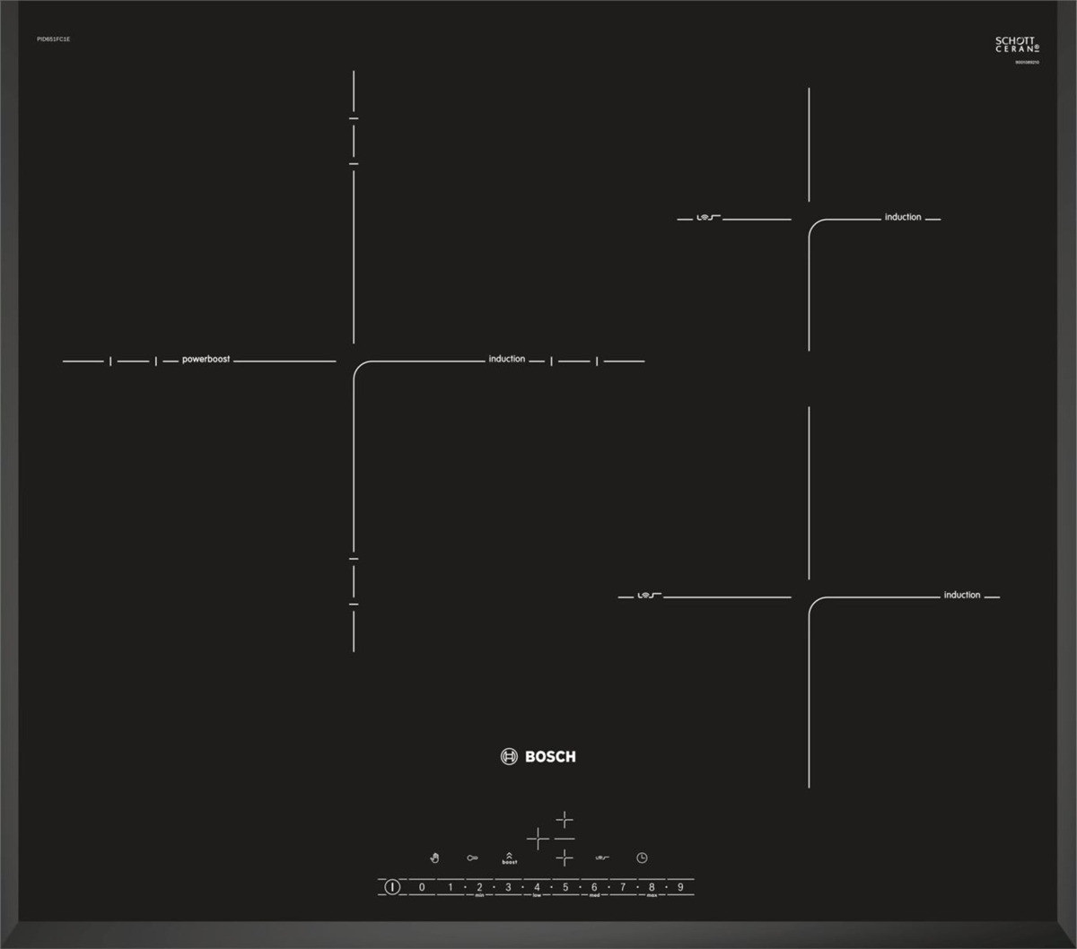 Với giá bán dao động trong khoảng 10-20 triệu đồng, bếp từ Bosch PID651FC1E là một trong những sản phẩm tiêu thụ mạnh của thương hiệu Bosch những năm trở lại đây. Bếp từ PID651FC1E có 3 vùng nấu cảm ứng, vùng nấu lớn nhất có kích thước khổng lồ tới 32cm và 2 vùng nấu nhỏ hơn có kích thước 21cm và 14,5cm. Bảng điều kiển trực tiếp gồm 17 cấp độ nấu, có bổ sung chức năng chiên xào với 5 mức công suất đạt hiệu quả nấu nướng tối ưu.