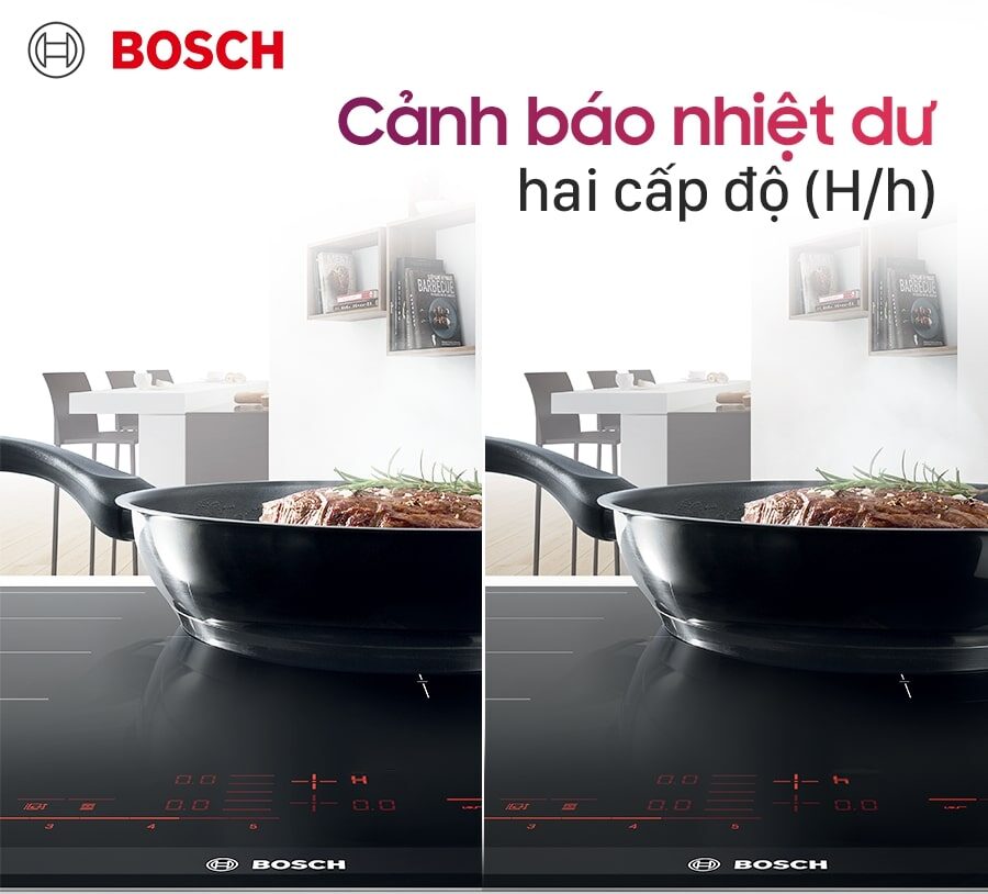 – Cảnh báo nhiệt dư hai cấp độ (H/h): giúp người sử dụng tránh động phải vùng bếp còn nóng ngay cả khi bếp đã tắt. Khi mặt bếp từ còn nóng, sẽ hiện lên chữ H cảnh báo mặt bếp rất nóng và đèn báo chữ h là còn khá nóng. Điều đó rất hữu ích giúp các bà nội trợ không vệ sinh bếp an toàn hơn