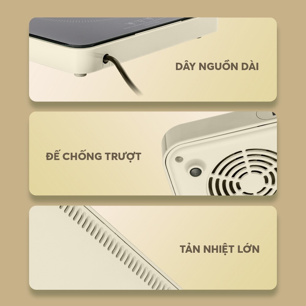 Công suất bếp cao 2100W giúp việc nấu nướng nhanh chóng, tiết kiệm điện năng hiệu quả