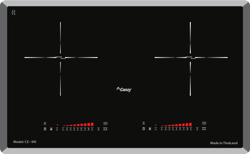 Bếp từ Canzy CZ 99I là sản phẩm được thiết kế 2 vùng nấu đặt âm riêng biệt và sang trọng, đây chính là model bếp từ của hãng Canzy nhập khẩu Thái Lan. Với 2 vùng nấu được thiết kế đẹp với bàn phím trượt Slider. Mặt kính K+ vát cạnh sang trọng còn có khả năng tản nhiệt và cách điện cực kỳ tốt, khiến bạn có thể hoàn toàn yên tâm khi sử dụng bếp.