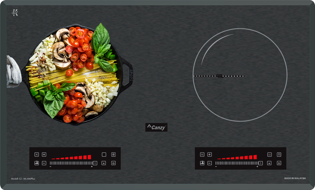 Bếp từ Canzy CZ-ML396Plus được tích hợp chức năng tự nhận diện vùng nấu, khi ta đặt nồi lên 1 trong 2 vùng nấu sau đó ấn nút khởi động bếp sau thời gian 1-2 giây bếp sẽ tự động tìm vùng nấu đã có nồi, ta chỉ việc điều chỉnh mức công suất to nhỏ theo ý muốn mà không phải thao tác chọn vùng nấu như bếp thông thường. Công nghệ Half-Bridge Inverter của tập đoàn E.G.O được áp dụng trên bếp từ Canzy CZ-ML396Plus có khả năng phản ứng thay đổi công suất theo điều khiển ngay tức thì, khi người dùng điều chỉnh tăng giảm nhiệt độ đun nấu, bếp điều chỉnh thay đổi tức thì về mức nhiệt độ mong muốn.