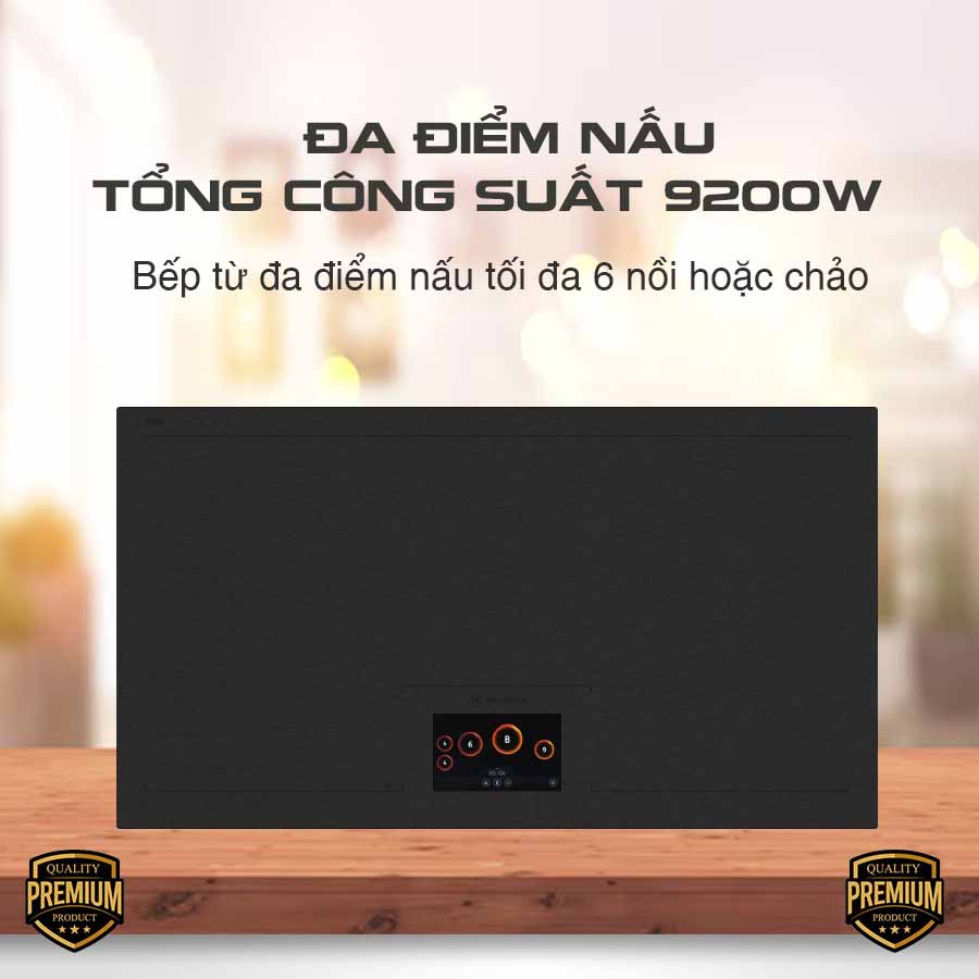 Đa vùng nấu tổng công suất 9200W, tính năng ghép vùng nấu và vùng nấu linh hoạt