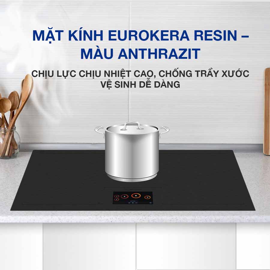 Bếp từ Malloca MH-92TFT sử dụng mặt kính Eurokera nổi tiếng của Pháp, không chỉ đẹp, dễ vệ sinh lau chùi mà còn sở hữu độ bền bỉ đáng tin cậy. Mặt kính có độ cứng cáp, độ chịu nhiệt cực tốt và đặc biệt chịu được sốc nhiệt trong quá trình nấu nướng cũng như trọng lượng lớn từ xoong nồi. Bạn có thể yên tâm nấu nướng hàng ngày mà không lo nhiệt độ cao hay nồi chảo nặng làm hư hại mặt kính.