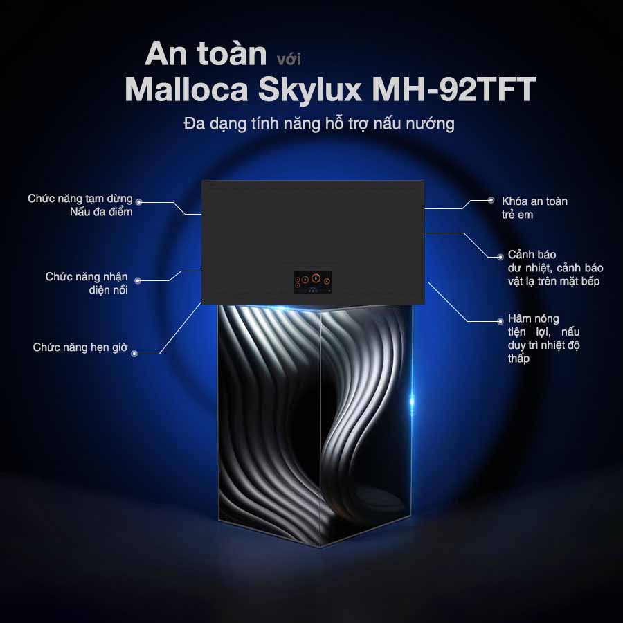 Bếp từ Malloca MH-92TFT có hệ thống cảm biến hiện đại, có thể phát hiện các sự cố như có nước hoặc chất lỏng tràn xuống bảng điều khiển, hay bếp bị quá nhiệt, quá áp, hoặc không có nồi đặt trên bếp. Lúc này, bếp sẽ tự động ngắt công suất và tạm dừng hoạt động, đồng thời phát ra cảnh báo để người dùng biết được. Tính năng này giúp bảo vệ an toàn cho bếp, an toàn của người dùng cũng như tránh lãng phí điện năng.