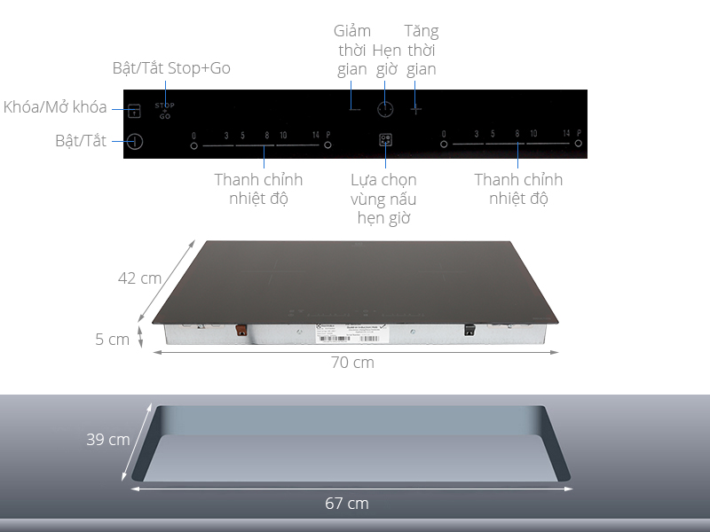 Khi muốn tạm dừng nấu, bạn chạm vào “Stop+Go” để tạm dừng, chạm thêm 1 lần nữa để kích hoạt chế độ tiếp tục nấu cho bếp