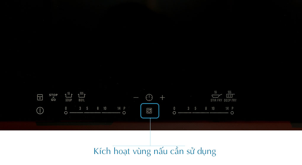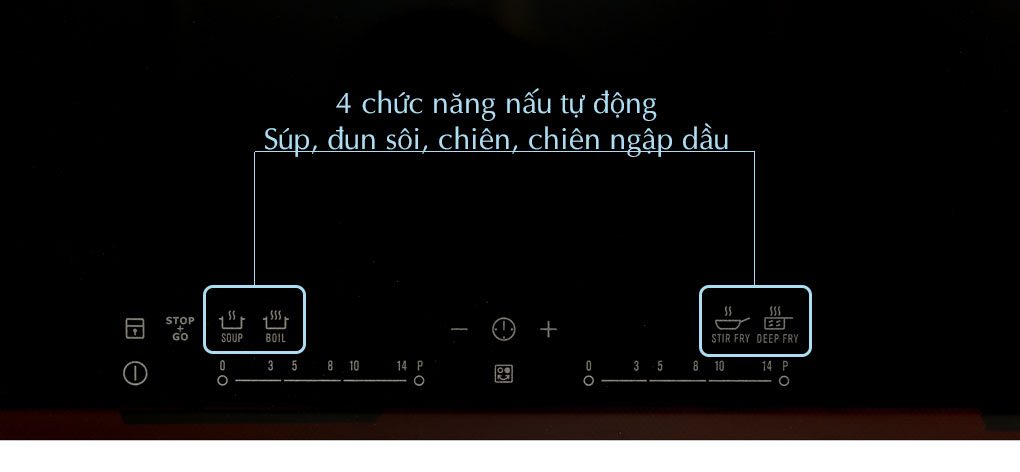 Chức năng “Stop + Go” khi được kích hoạt sẽ tạm ngừng hoạt động và chuyển sang chế độ giữ ấm. Chỉ cần chạm lại 1 lần nữa để bếp trở lại chương trình đang nấu