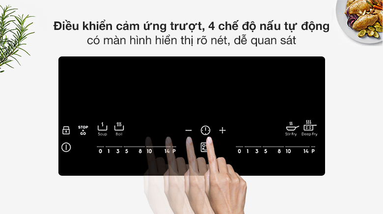 Bếp từ Electrolux điều khiển cảm ứng trượt độc lập cho mỗi vùng nấu cho bạn tùy chỉnh chức năng linh hoạt, chính xác hơn
