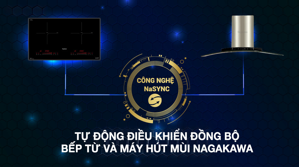 Công nghệ NaSYNC tự động điều khiển đồng bộ giữ bếp điện từ và máy hút mùi Nagakawa