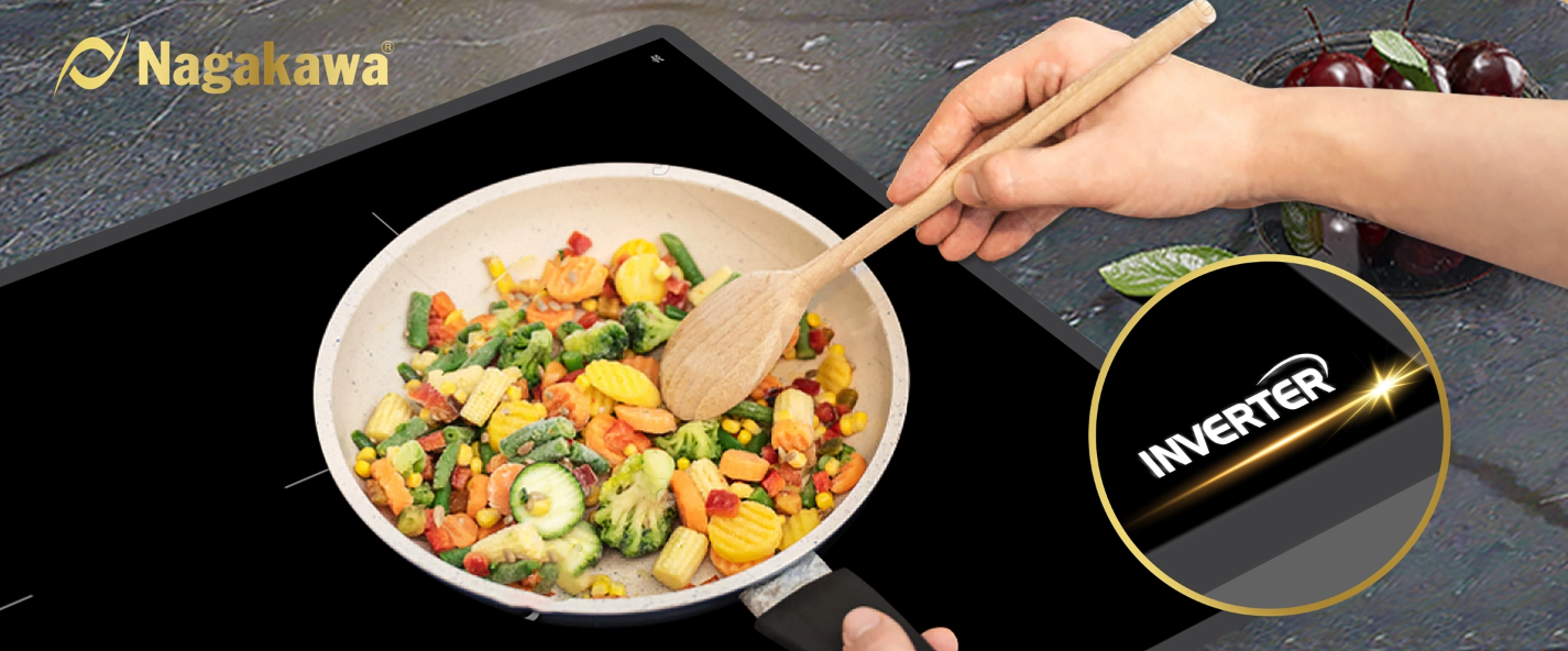 Bếp đôi điện từ Nagakawa UltraSlim NK2C225M trang bị công nghệ Inverter kiểm soát công suất của thiết bị, nhằm tránh hao phí năng lượng trong quá trình sử dụng. Nguyên tắc cơ bản của công nghệ Inverter là dựa trên kiểm soát từng tần số dao động (Hz) của các bảng mạch bên trong bếp, giúp đảm bảo độ ổn định của bếp, tiết kiệm tối đa năng lượng và gia tăng tính năng thông minh cho bếp.