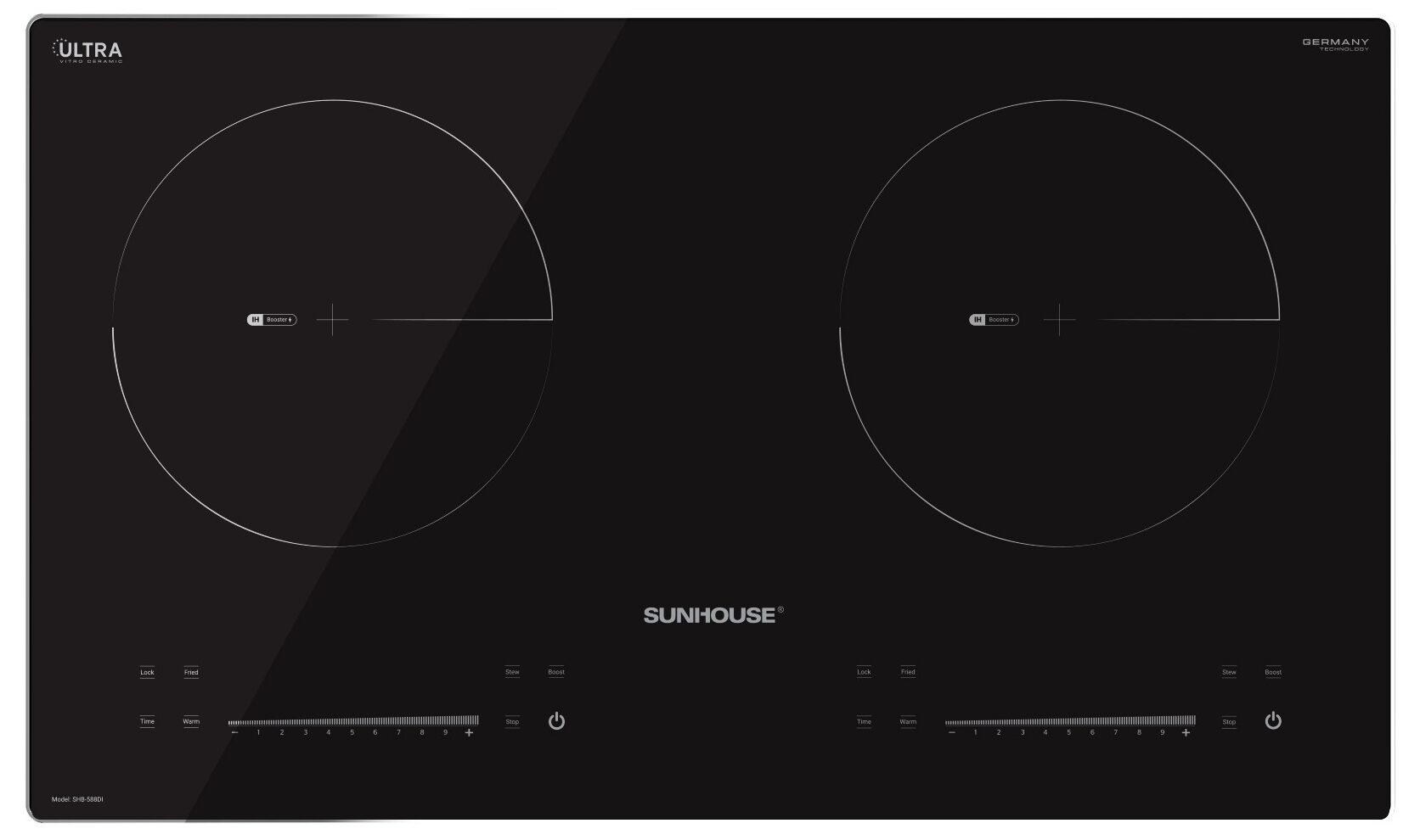 - Cảnh báo quá nhiệt/nồi cạn: Bếp từ Sunhouse được thiết kế cảm biến nhiệt độ dưới mỗi vùng nấu, khi có hiện tượng quá nhiệt (nồi đun bị cạn, cháy…) bếp sẽ chủ động ngắt công suất để đảm bảo an toàn cho thiết bị cũng như đảm bảo không sự cố đáng tiếc xảy ra.