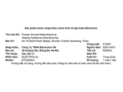 Tính năng an toàn Tự ngắt khi dùng nồi không phù hợp, cảnh báo nồi không phù hợp, khóa bảng điều khiển