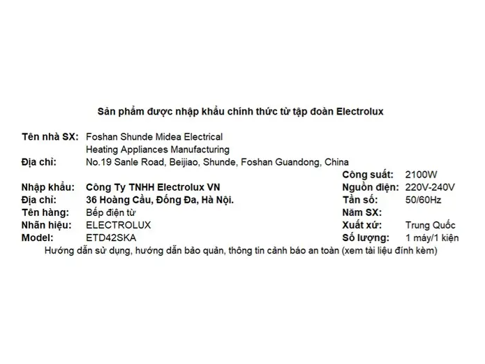 Bếp từ Electrolux ETD42SKA thiết kế mỏng đẹp mắt, chất lượng tốt, độ bền cao, được nhiều người tin dùng.