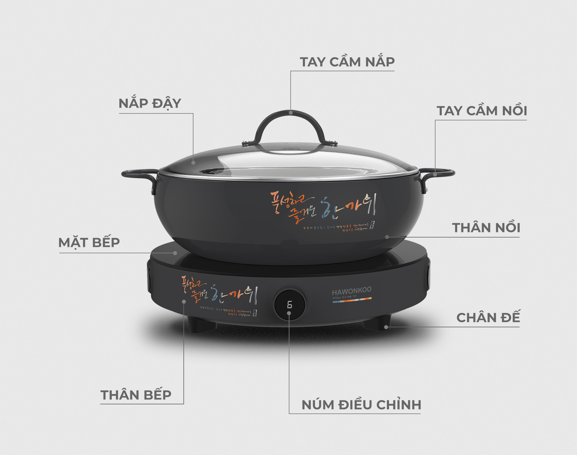 Bếp từ đơn Hawonkoo CEH-101-I-CF gây ấn tượng mạnh với thiết kế hình tròn vô cùng độc đáo mới lạ. Thân bếp được phủ sơn tinh tế với gam màu cafe, ghi và hồng pastel ngọt ngào, kết hợp hài hòa với dòng chữ Hawonkoo đa sắc tạo nên điểm nhấn riêng đúng chất “Bếp có Gu”. Nhỏ xinh nhưng có võ, CEH-101-I hứa hẹn thổi bùng ngọn lửa đam mê nấu nướng của chị em nội trợ để chế biến thật nhiều món ăn ngon hấp dẫn cho cả gia đình.