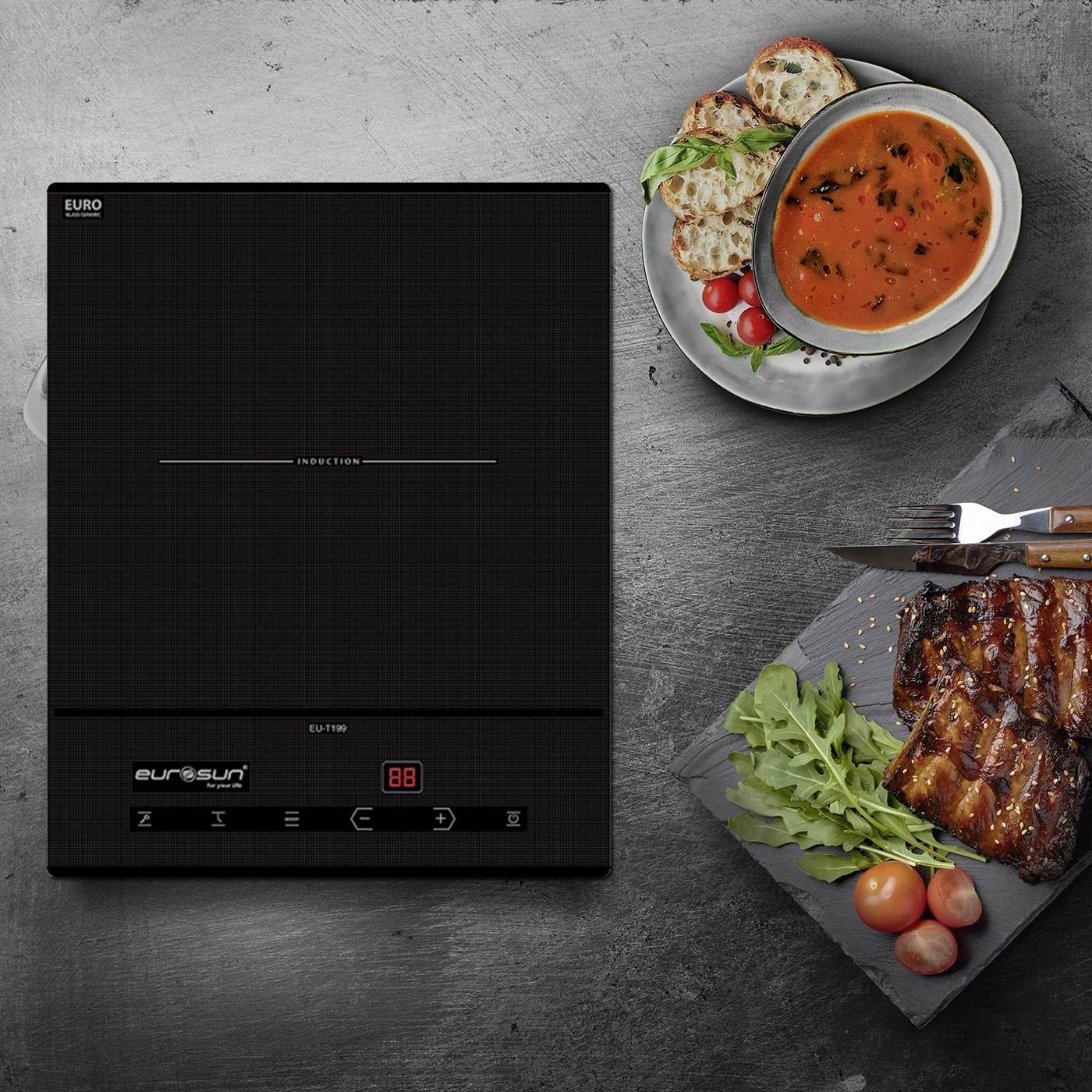 Bếp từ Eurosun EU-T199 sử dụng bảng điều khiển cảm ứng dạng Touch Control hiện đại với 9 cấp độ công suất nhiệt độ khác nhau, điều khiển dễ dàng bằng một ngón tay, mọi chương trình nấu đều được hiển thị qua đèn Led sắc nét để bạn điều chỉnh cho phù hợp với các món ăn.