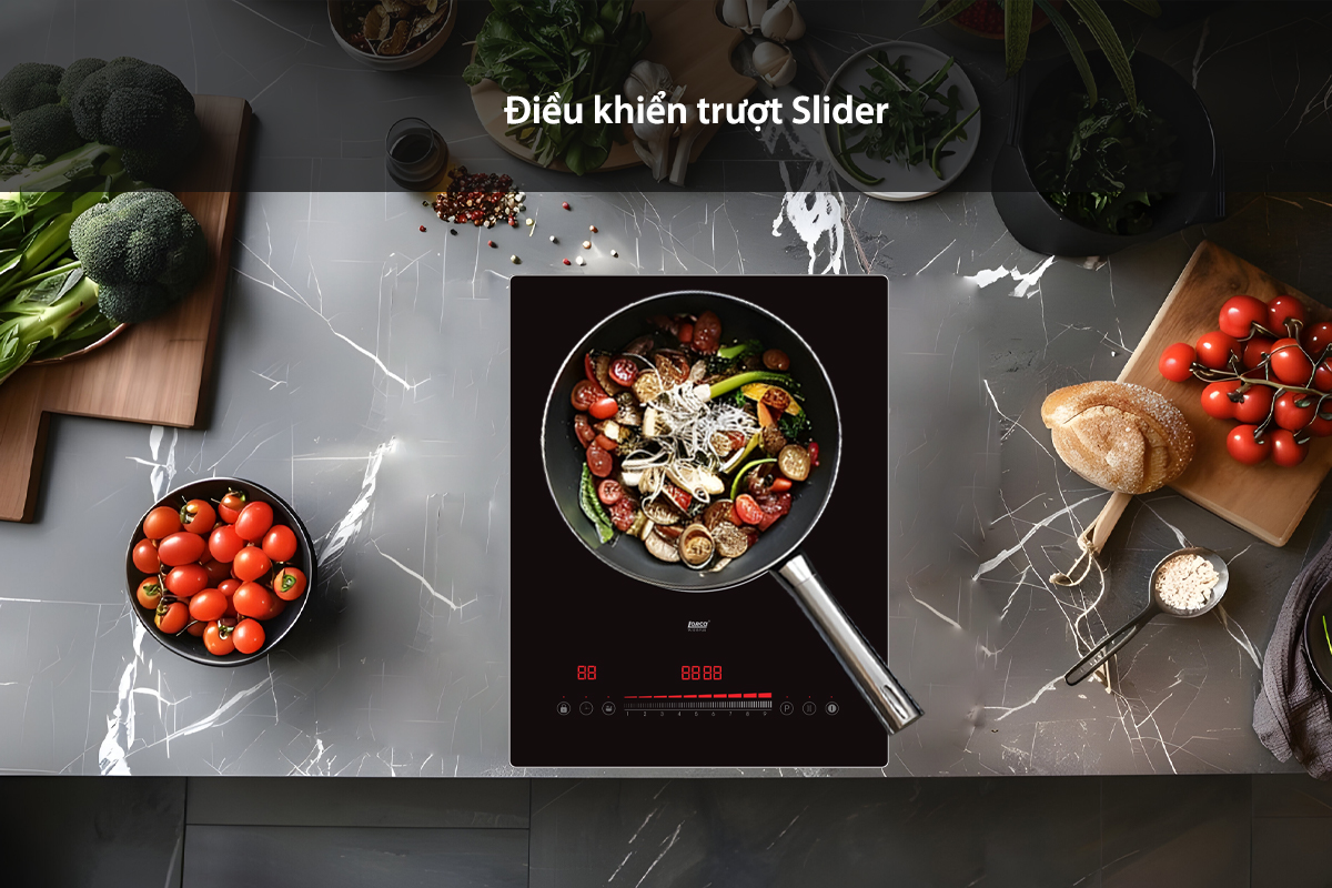 Bảng điều khiển phím cảm ứng trượt Slider siêu nhạy với 9 mức công suất độc lập cho 2 vùng nấu linh hoạt dễ dàng sử dụng, dễ thao tác với cả người cao tuổi và trẻ em