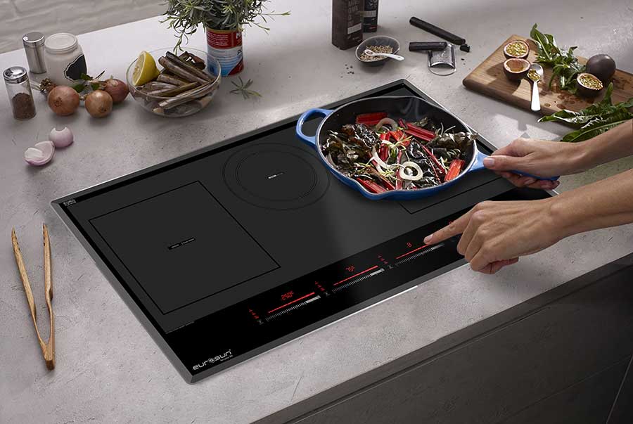 Bảo vệ quá nhiệt (cảm biến nhiệt độ tích hợp trong từng vùng nấu): Bếp Eurosun được thiết kế cảm biến nhiệt độ dưới mỗi vùng nấu, khi có hiện tượng quá nhiệt (nồi đun bị cạn, cháy…) bếp sẽ chủ động ngắt công suất để đảm bảo an toàn cho thiết bị cũng như đảm bảo không sự cố đáng tiếc xảy ra.