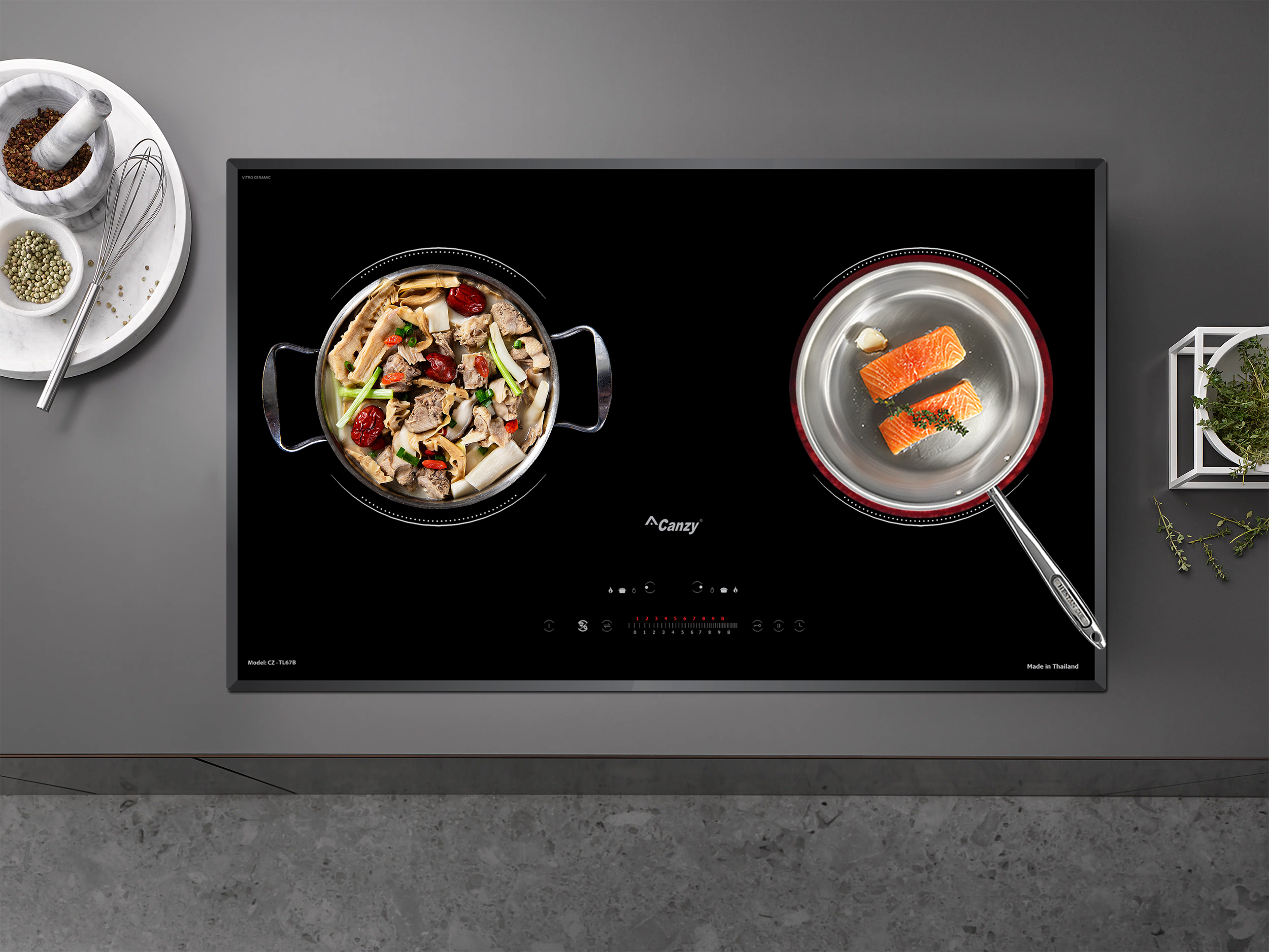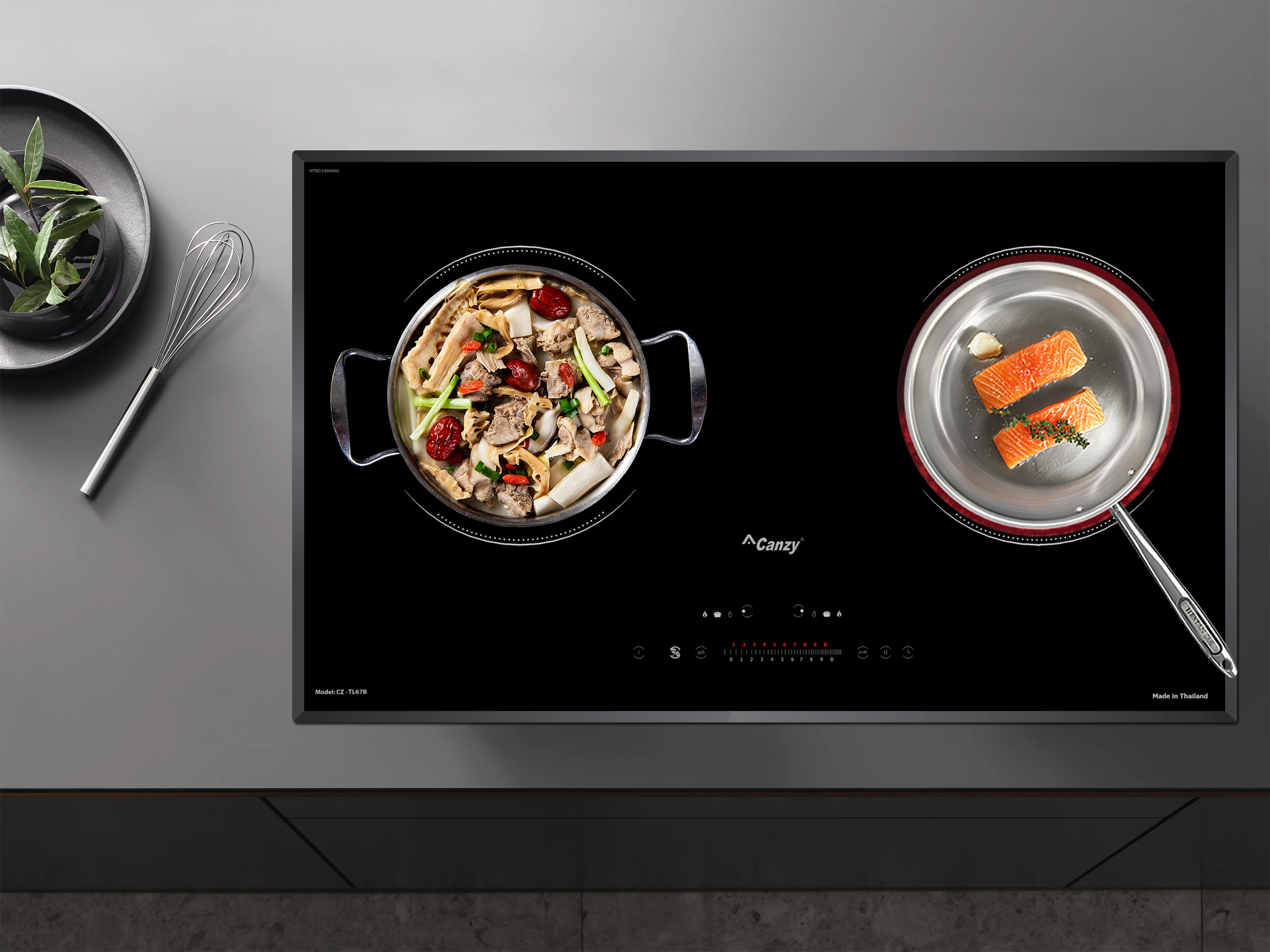 Bếp điện từ Canzy CZ-TL67B sử dụng bảng điều khiển cảm ứng dạng trượt Slider Control hiện đại với 9 cấp độ công suất nhiệt độ khác nhau, điều khiển dễ dàng bằng một ngón tay, mọi chương trình nấu đều được hiển thị qua đèn Led sắc nét để bạn điều chỉnh cho phù hợp với các món ăn. Bếp còn được trang bị thêm các chức năng nấu thông minh là tính năng tạm dừng, hâm nóng, rã đông, nấu cơm và chiên rán.
